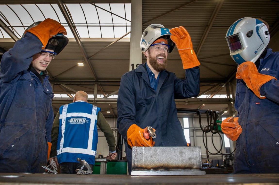 Jonge gasten met gouden handjes waar momenteel zo’n behoefte aan is. In de fabriekshal liepen er vele. Getalenteerde vaklui in de dop. Lassen, slijpen, boren, helemaal hun ding. Tillen hoeven ze er niet, want overal heeft Brink kranen en andere hulpmiddelen voor.