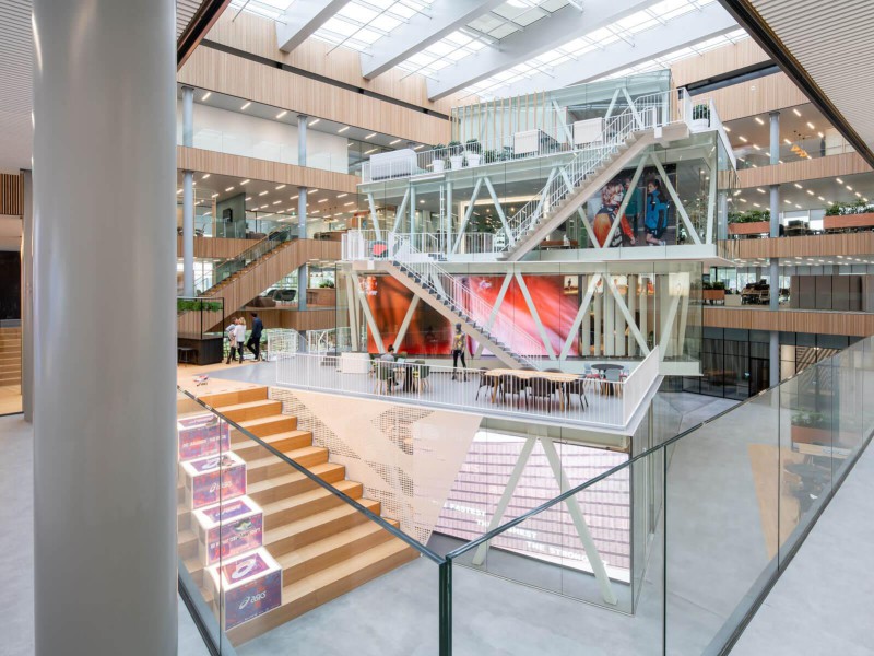 In opdracht vanPleijsier Bouw hebben we de staalconstructie geleverd en gemonteerd voor het nieuwe EMEA hoofdkantoor van Asics in Hoofddorp. De ruim opgezette, kolomvrije, werkvloeren omvatten een ruim en licht atrium. In het atrium bevindt zich in unieke driedimensionale 'showcase’. Het pand heeft een totale oppervlakte van 19.500 m² en is gebouwd met een ondergrondse parkeergarage. Het kantoor ontving zowel een WELL certificering als een LEED certificering op het niveau Gold.